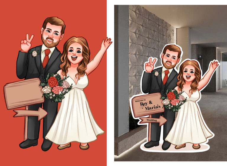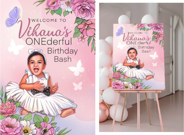 Designed to be the focal point of an entrance, these illustrations are optimized for large-scale printing on foam boards or canvas. By blending personalized character art with professional typography, these boards serve as both a functional greeting for guests and a unique piece of event decor.