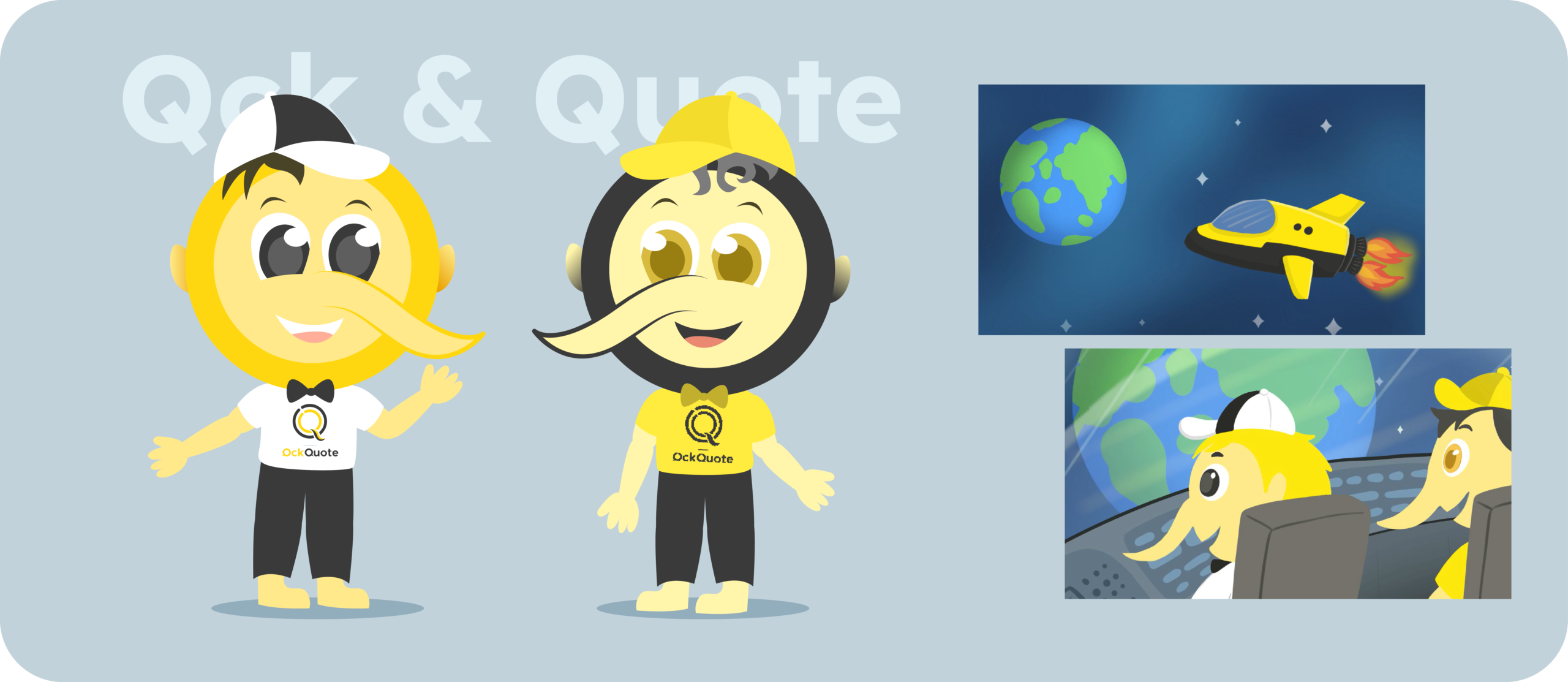 To strengthen brand personality and audience connection, we also developed two fun and distinctive mascot characters — Qck and Quote. The head shape of both characters is derived from the same “Q” form used in the logo, ensuring strong visual consistency across the brand system. These mascots are expressive, friendly, and designed to make the platform feel approachable and engaging.