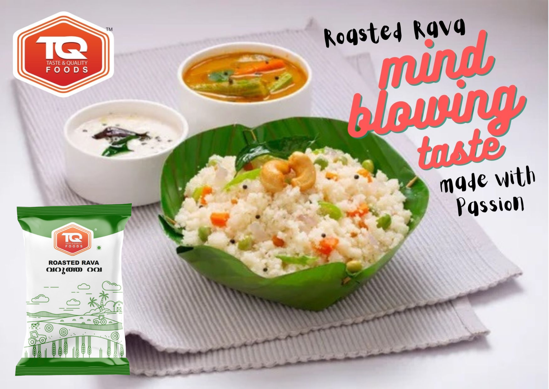 In addition to product promotions, we also designed special occasion and festival-themed posters for celebrations like Onam and Navaratri. These creatives incorporated festive color schemes, cultural motifs, and celebratory elements while seamlessly integrating TQ Foods’ products into the theme. The goal was to help the brand emotionally connect with its audience during meaningful cultural moments, making the products feel like a part of every celebration and traditional meal.